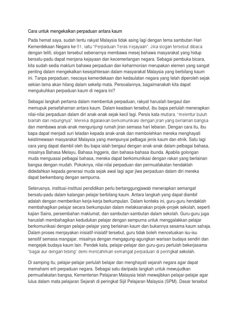 Langkah Langkah Untuk Mengekal Dan Memantapkan Perpaduan Kaum Di Malaysia Pdf